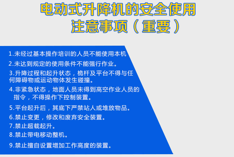 四:性能高,采用上下雙控低壓操作按鈕,配備一鍵式緊急停止及意外失去電源的應(yīng)急下降裝置,提高了設(shè)備的穩(wěn)定性。