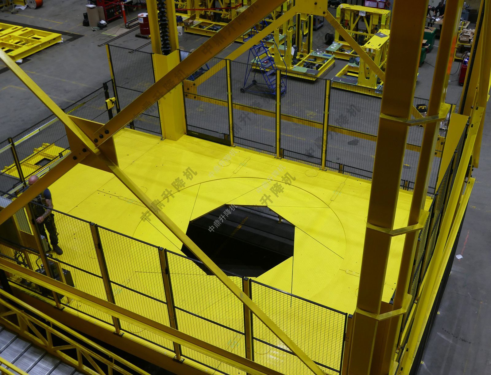 這種定制設(shè)計(jì)的垂直裝配平臺(tái)將用于在大型渦輪機(jī)建造過程中將技術(shù)人員定位在正確的高度和位置。該組件獨(dú)特的虹膜開口允許在產(chǎn)品直徑周圍進(jìn)行特殊放置,以便將渦輪機(jī)構(gòu)建出來。